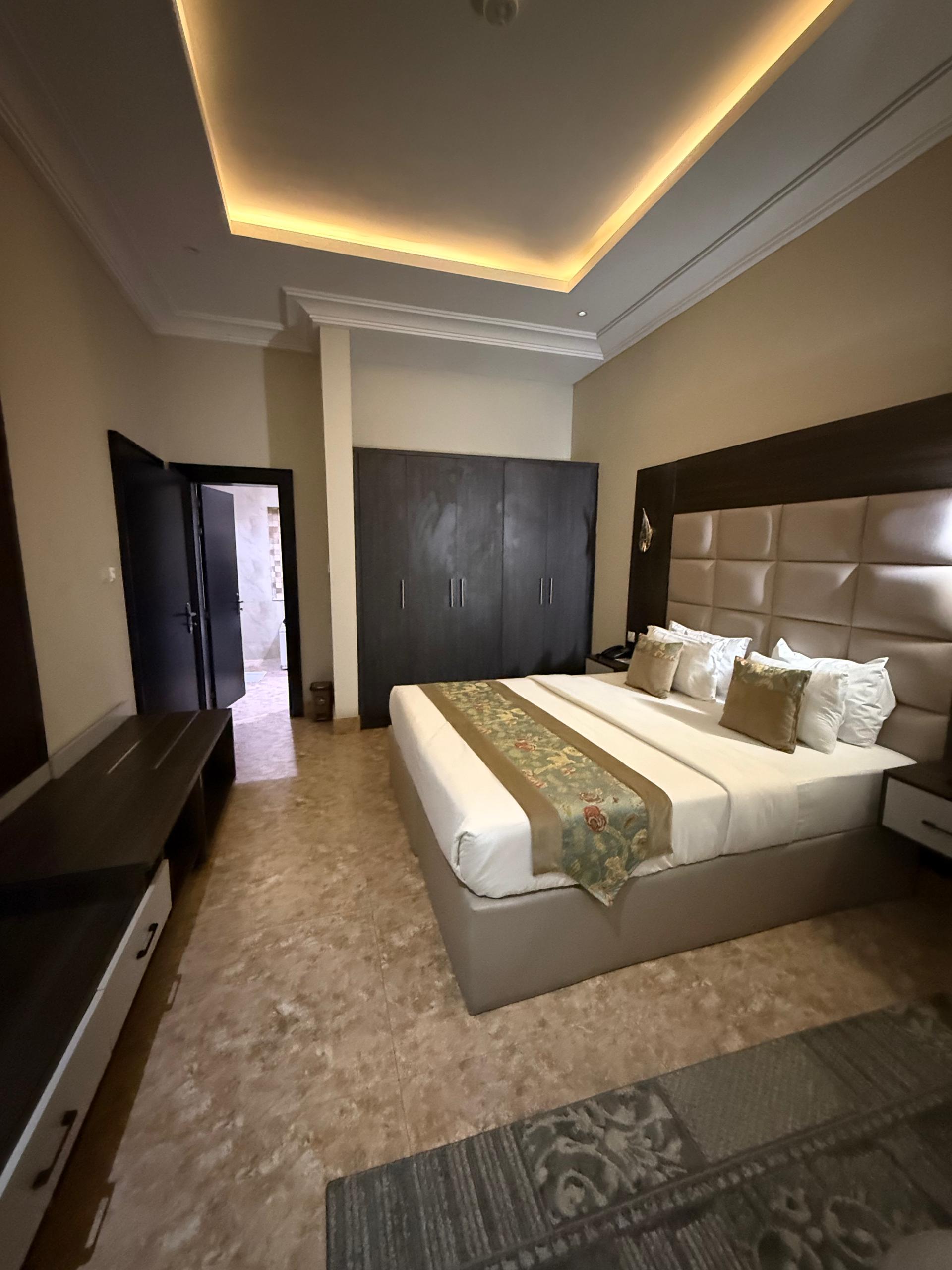 Spacious Executive Suites designed for discerning guests who value extra space and premium amenities. Perfect for extended stays. Bed size: 36 ft². Amenities WiFi TV Executive Work Station Room Service Complimentary Breakfast Bar Access Rooftop Access Luxury Toiletries Daily Room keeping