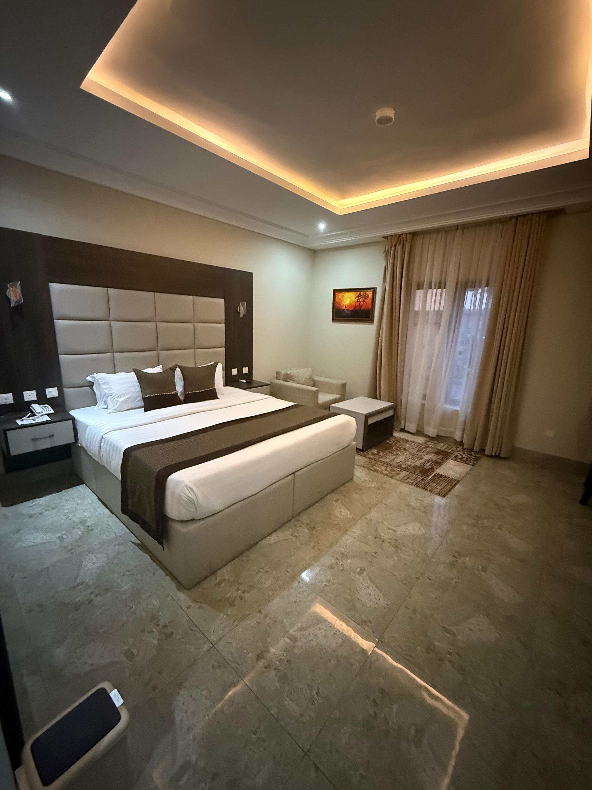Our Deluxe rooms offer a perfect blend of comfort and elegance, ideal for business travelers and couples seeking a refined stay. Bed size: 36 ft². Amenities WiFi TV Executive Work Station Room Service Complimentary Breakfast Luxury Toiletries Daily Room keeping